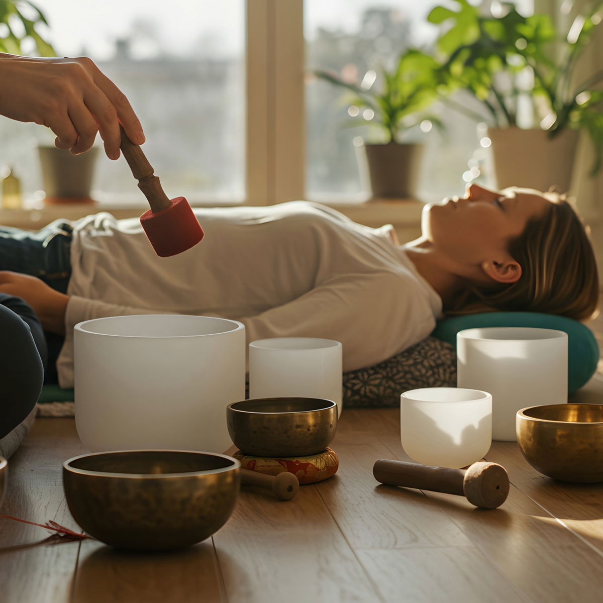 🕊️ Cuencos tibetanos, usados de forma puntual según tu energía, para relajar el sistema nervioso y armonizar chakras.